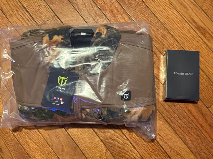 “Took about 2 weeks to arrive. As soon as I opened everything I fell in love with the quality. I live in Iowa so the weather here is pretty harsh during this time, but when I tried it on for the first time it instantly made me feel like I was wrapped inside my favorite blanket. So comfortable and cozy. I grabbed the Buy 1 Get 1 50% off deal and got the black and camo jackets — both look great. The free gifts were a surprise too, I loved the face mask, I honestly would’ve paid extra for it, and the hand warmers are perfect and convenient. Thank you, will be ordering again!”